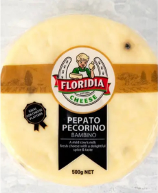 Pepato Pecorino Bambino is a young Italian sheep’s milk cheese infused with whole black peppercorns for a gently spicy, aromatic finish.